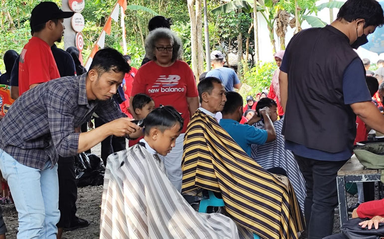 "Awalnya, kami berencana memberikan voucher, namun akhirnya kami memutuskan untuk menghadirkan tiga tukang cukur langsung di lokasi acara," jelas Yoga. Keputusan ini juga melibatkan para pelaku UMKM, khususnya jasa potong rambut, sebagai bentuk kontribusi nyata dalam memeriahkan peringatan kemerdekaan.